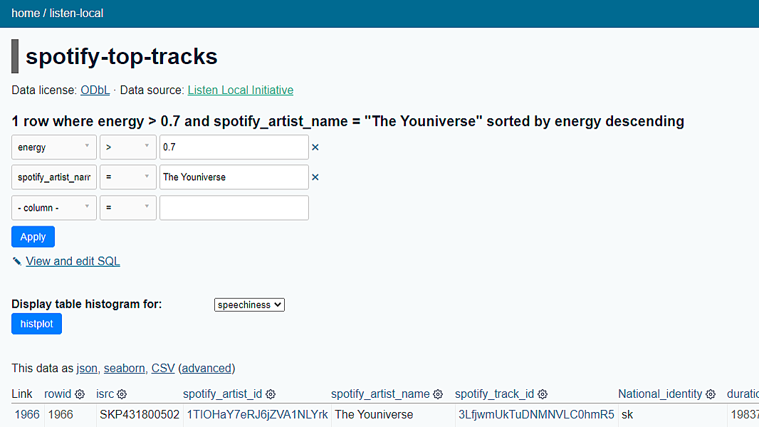 The idea behind Listen Local is simple: we want machine learning algorithms of Spotify, YouTube, or other services to learn more about Slovak music. In order to make machines learn about Slovak music, we have to make machine-readable tables of Slovak music for AI learners.
